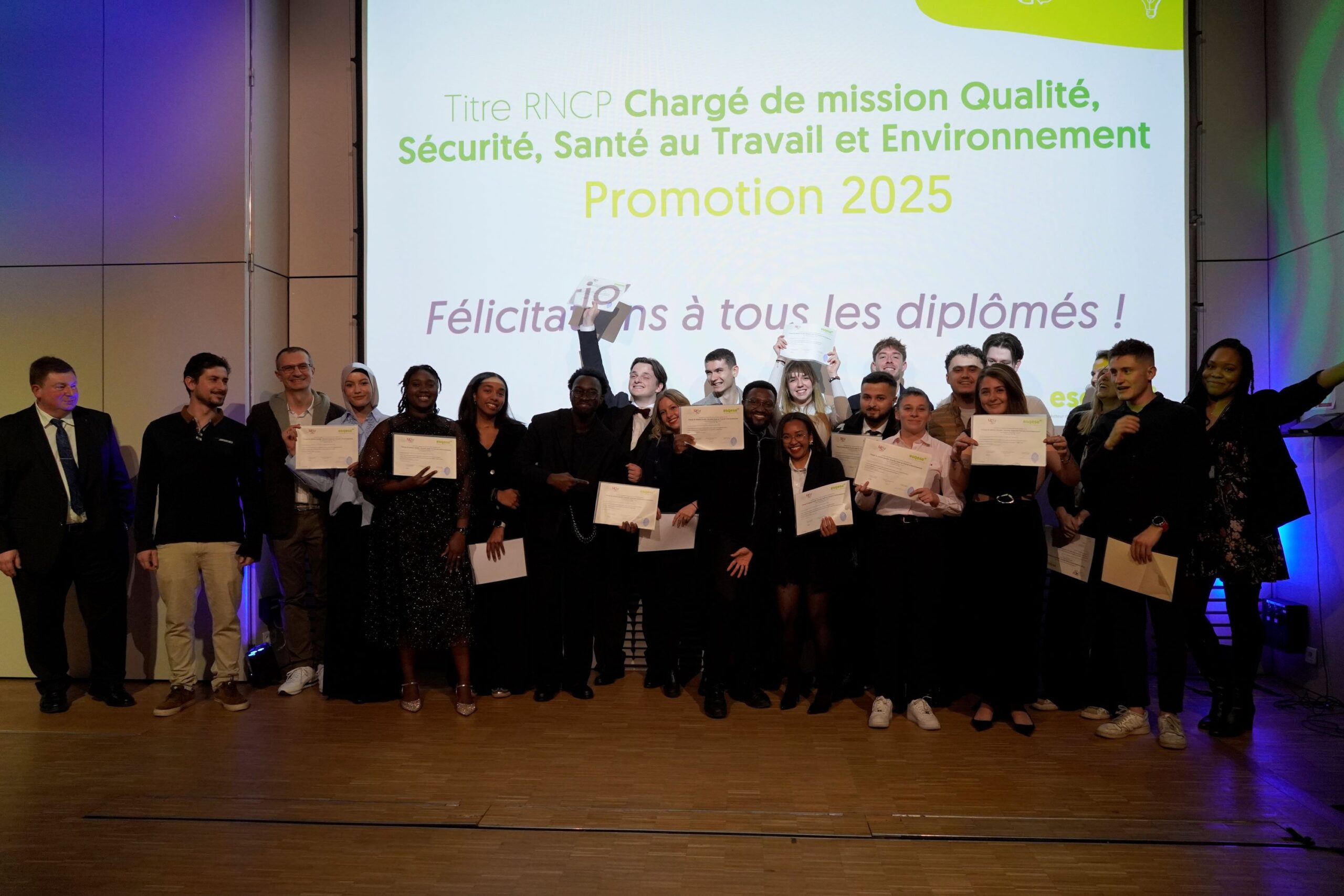 Le vendredi 12 décembre, l'ESQESE a eu le plaisir d’organiser la cérémonie de remise des diplômes des promotions 2025 pour le bachelor chargé de mission QSSTE et le Master Manager QSE. Un moment fort, symbolisant l’aboutissement de plusieurs années de travail, d’engagement et de projets.